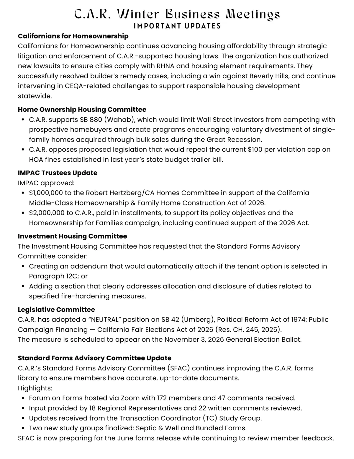"The staff is approachable, professional, and excel at organizing events.We are so fortunate to have our new Association Executive—what a fantastic addition to our team!"